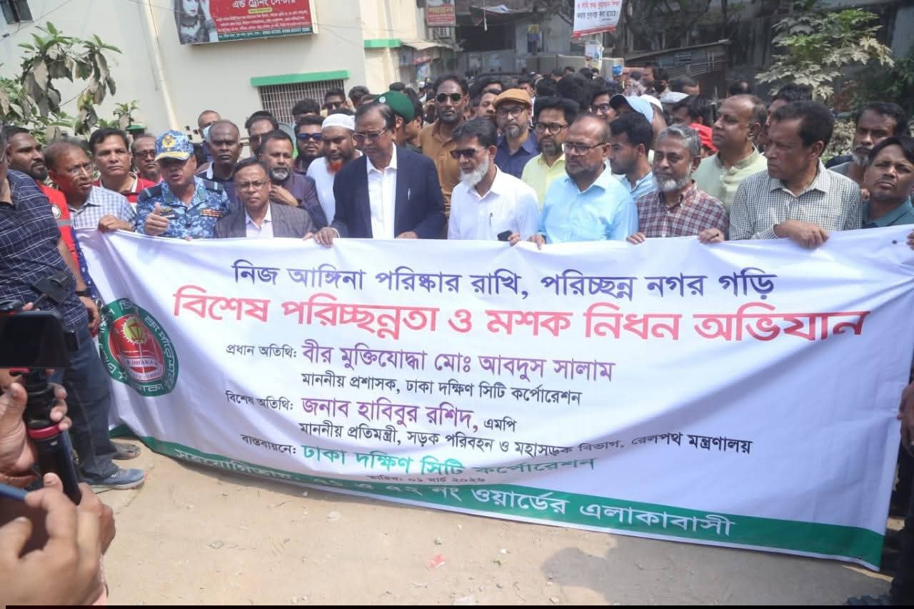 মুগদায় বিশেষ পরিচ্ছন্নতা ও মশক নিধন অভিযান “নিজ আঙ্গিনা পরিষ্কার রাখি, পরিচ্ছন্ন নগর গড়ি”—নাগরিক সচেতনতায় প্রতিমন্ত্রী হাবিবুর রশিদ হাবিব