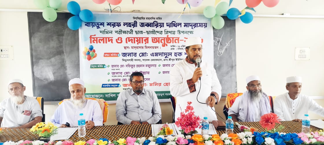 চৌদ্দগ্রাম উপজেলা শ্রীপুর ইউনিয়ন বায়তুশ শরফ লহরী জব্বারিয়া দাখিল মাদ্রাসায় মিলাদ মাহফিলের মধ্যে দিয়ে ২০২৬ এর দাখিল পরিক্ষার্থীদের ছাত্র ছাত্রীদেরর বিদায় অনুষ্ঠান অনুষ্ঠিত হয়, রবিবার সকাল ১০টায় বায়তুশ শরফ লহরী জব্বারিয়া দাখিল মাদ্রাসার অটোরিয়াম হলরুমে আয়োজিত অনুষ্ঠানে প্রধান অতিথি হিসেবে উপস্থিত ছিলেন শ্রীপুর ইউনিয়ন পরিষদের সাবেক চেয়ারম্যান এমদাদুল হক শাহী, কুমিল্লা মহানগর ছাত্র শিবিরের সাবেক প্রচার সম্পাদক ও অত্র মাদ্রাসার সভাপতি মোঃ মনির হোসাইন এর সভাপতিত্বে ও শ্রীপুর ইউনিয়ন জামায়াতে ইসলামী আমির মাওলানা আব্দুল হাকিম এর সঞ্চালনায় এই সময় বিশেষ অতিথি হিসেবে উপস্থিত ছিলেন অত্র মাদ্রাসার সুপার মাওলানা আবুল কাশেম, সহ সুপার মাওলানা আবু তাহের, কুমিল্লা ইবনে তামিয়া স্কুল শিক্ষক মোঃ আলমগীর হোসেন সহ বিভিন্ন নেতৃবৃন্দ উপস্থিত ছিলেন। আয়োজিত অনুষ্ঠানে অত্র মাদ্রাসার সভাপতি মোঃ মনির হোসাইন পরিক্ষার্থীদের উদ্দেশ্যে বক্তব্য উল্লেখ করে বলেন, আমরা বর্তমানে এমন একটি অবস্থায় বসবাস করে যাচ্ছি , যা বলার মতো ভাষা আমাদের নেই, বর্তমানে ৮০% ভাইয়েরা মাদককে সঙ্গী হিসেবে বেছে নিয়েছে, তাঁরা এক সময় বুজতে পারবে, যখন তার সাথে বসে পরিক্ষা দেওয়া ছাত্রটি ভালো লেখা পড়া করার কারণে সে সমাজ পরিচালনা থেকে শুরু করে দেশ পরিচালনার কাজে সকলে খুঁজে ওই ছেলেটিকে , তাৎক্ষণিক যাঁরা মাদকের সঙ্গে থেকে নিজেকে বরবাদ করে দিয়েছে, তখন শুধু আক্ষেপ করবে যে লেখা পড়া না করে জীবনে বড় ভুল করেছি, তাই আমি সকলের উদ্দেশ্যে একটি কথা বলতে চাই, একটি শিক্ষিত সমাজ উপহার দিতে হলে, ভালো লেখাপড়ার মধ্য দিয়ে ও ভালো রেজাল্টের মধ্য দিয়ে সমাজ ও দেশ পরিবর্তন করা সম্ভব ও প্রত্যেক পাড়ায় মহল্লায় একটি শিক্ষিত সমাজ গড়ে উঠবে আমি মনে করি। তাই সকলে একটি শিক্ষিত সমাজ উপহার দেওয়ার লক্ষ্যে সকলে পড়ালেখার প্রতি মনোযোগ দিব ও ভালো রেজাল্ট করার জন্য চেষ্টা চালিয়ে যেতে হবে সকল ভাই বোনেরা। এইসব কথা বলে থাকেন কুমিল্লা মহানগর ছাত্র শিবিরের সাবেক প্রচার সম্পাদক মনির হোসাইন।