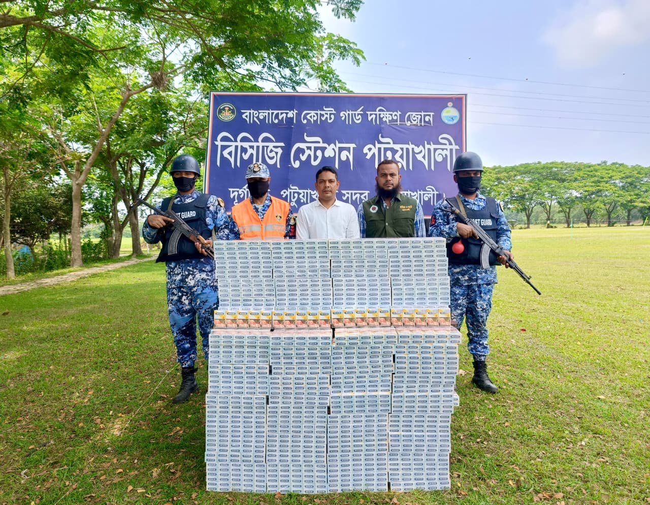 পটুয়াখালীতে কোস্ট গার্ড ও কাস্টমসের যৌথ অভিযান: বিপুল পরিমাণ নকল সিগারেট জব্দ