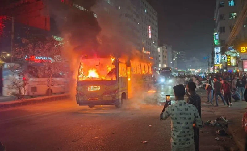 বাড্ডায় ফের যাত্রীবাহী বাসে আগুন