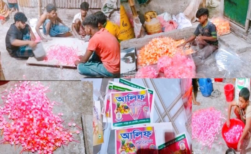 কেরানীগঞ্জে নোংরা পরিবেশে ভেজাল চকলেট–লজেন্স উৎপাদন: অনুমোদনহীন কারখানায় শিশু শ্রমের অভিযোগ।